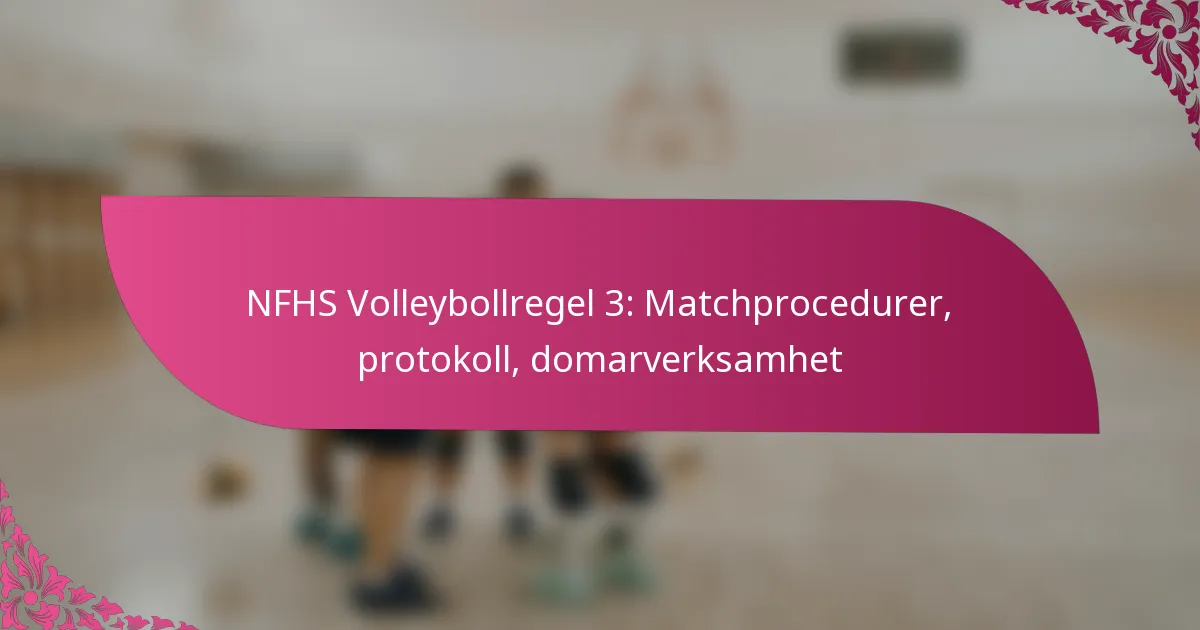 NFHS Volleyboll Regel 3 ger en omfattande ram för matchprocedurer, domaransvar och viktiga protokoll som underlättar den smidiga driften av volleybollmatcher. Genom att följa dessa riktlinjer kan domare och lag säkerställa rättvist spel och effektiv kommunikation under hela matchen, vilket adresserar de unika utmaningarna inom gymnasievolleyboll. Att förstå de specifika reglerna kring timeouter och domarroller är avgörande för att upprätthålla spelets integritet och flöde.