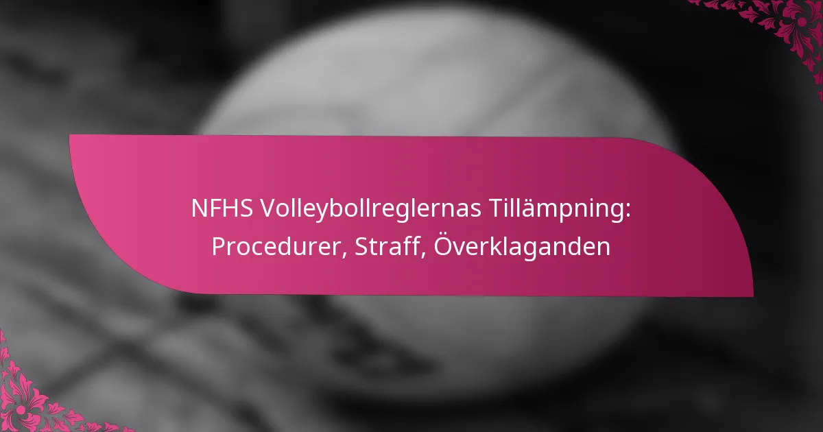 NFHS:s procedurer för att upprätthålla volleybollregler syftar till att främja rättvist spel och efterlevnad av regler under matcher. Dessa procedurer beskriver rollerna för domare, rapportering av överträdelser och utredningsprocessen för att hantera regelbrott. Straff för regelöverträdelser varierar i svårighetsgrad och är avgörande för att upprätthålla sportsligt uppträdande, medan en formell överklagandeprocess finns för att ifrågasätta beslut om upprätthållande, vilket kräver efterlevnad av specifika riktlinjer och tidsfrister.